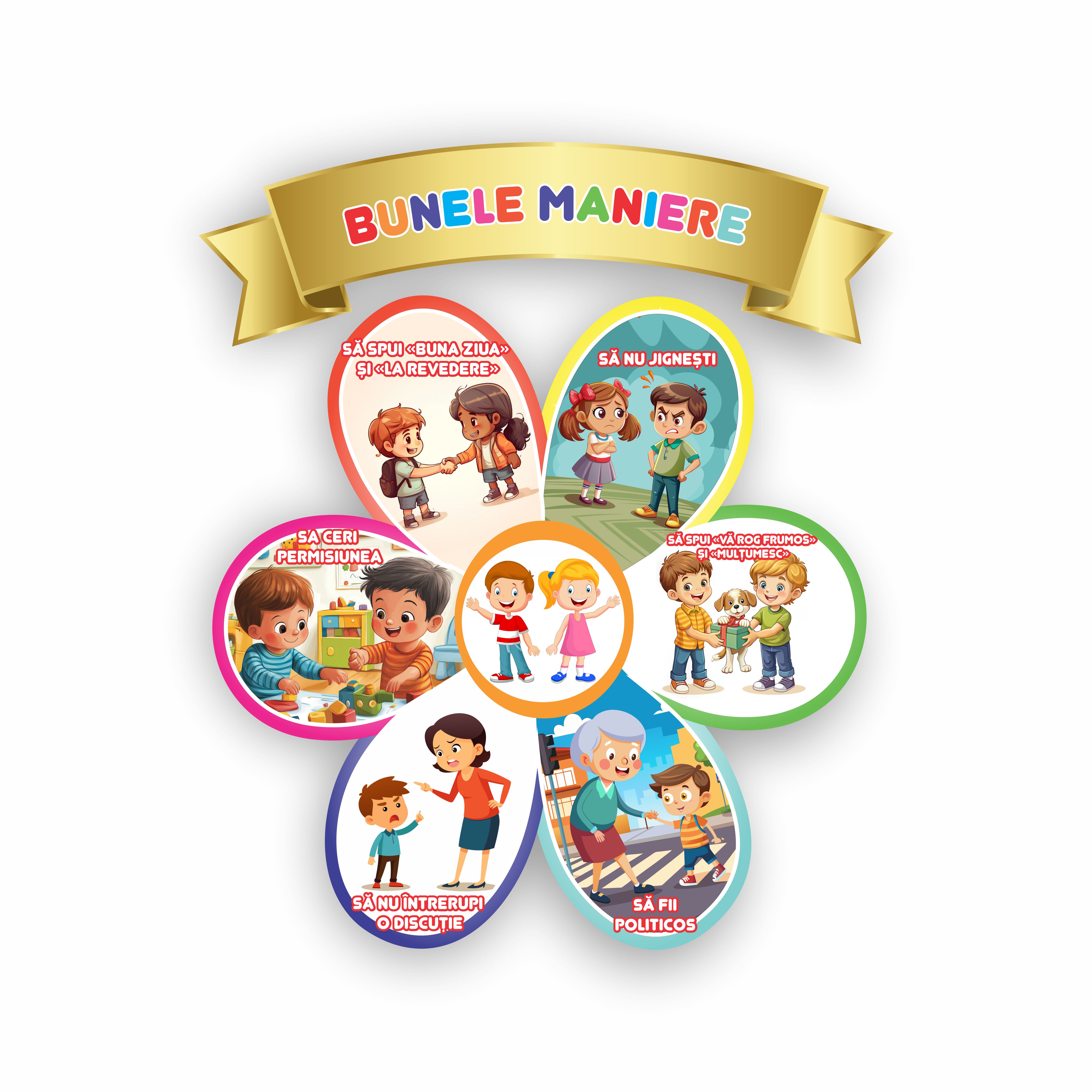 Panoul „Bunele Maniere” este un instrument educațional atractiv și colorat, care îi învață pe copii regulile de bază ale comportamentului civilizat: salutul, politețea, respectul și comunicarea adecvată. Ideal pentru grădinițe și clasele primare, acest panou ajută la dezvoltarea relațiilor armonioase între colegi și cadrele didactice.