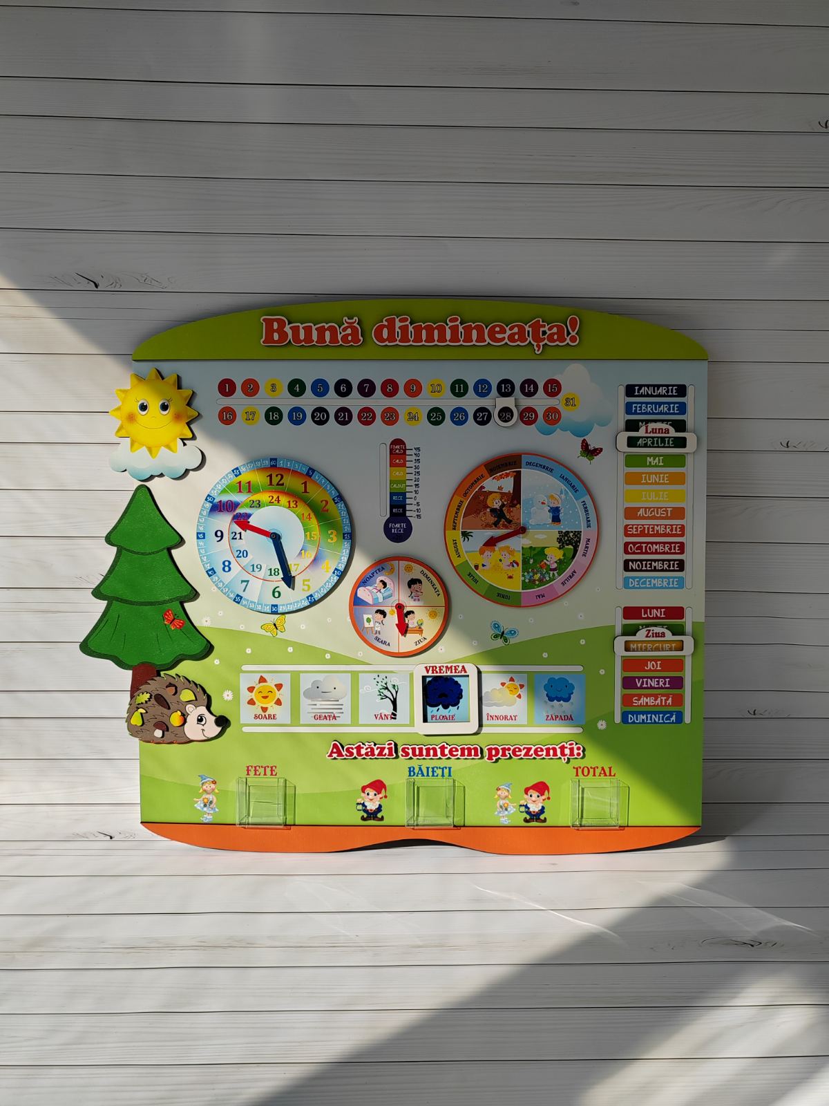 Ajută-ți copilul să învețe zilele săptămânii, lunile anului, data, anotimpurile și starea vremii cu ajutorul acestui calendar educațional magnetic cu design atractiv! Ideal pentru grădiniță și acasă, acest calendar interactiv pentru copii dezvoltă noțiunile de timp într-un mod distractiv și vizual.