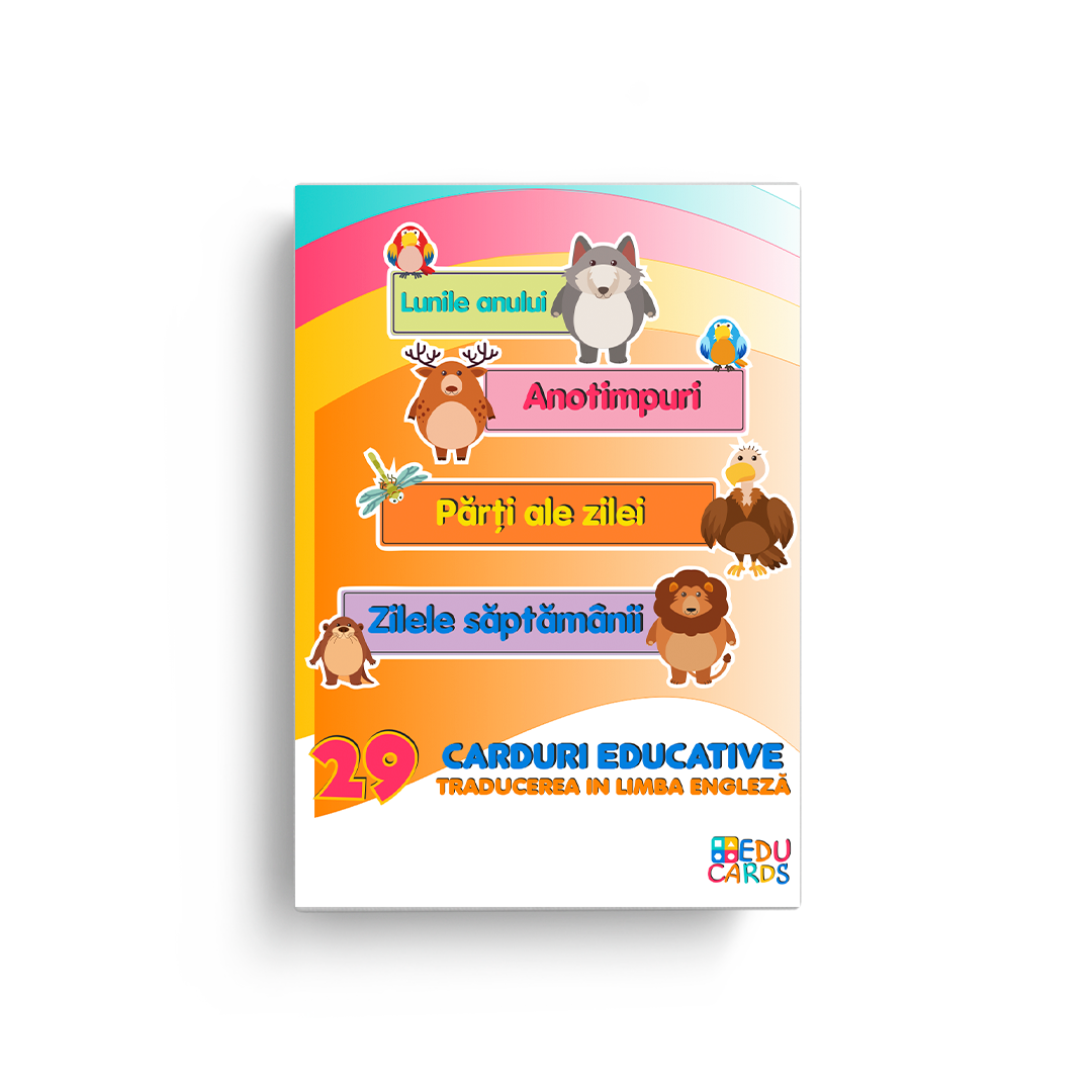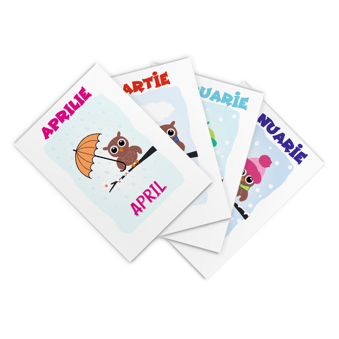 Cartonașele educative sunt un mod distractiv și interesant de a familiariza copiii cu conceptul de calendar și elementele sale atât în limba maternă, cât și în o limba străină.