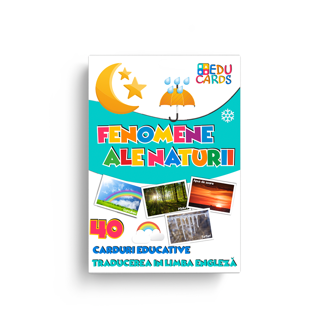 Setul de cartonașe educative este o modalitate fantastică de a ajuta copiii în cunoașterea naturii, ușor și interesant, fiecare fenomen sau element al naturii fiind reprezentat prin imagine.