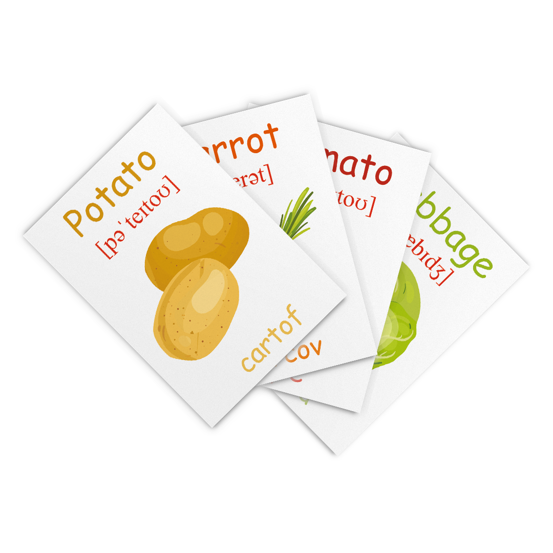 Să cunoaștem lumea împreună! Setul de cartonașe educative este un mod excelent de a familiariza pe cei mici cu denumirile de legume într-un mod interactiv și atractiv. Folosit în cadrul diferitelor activități și jocuri, va ajuta copiii în procesul de dezvoltare a abilităților de memorie, de comunicare orală, de caracterizare și identificare.
