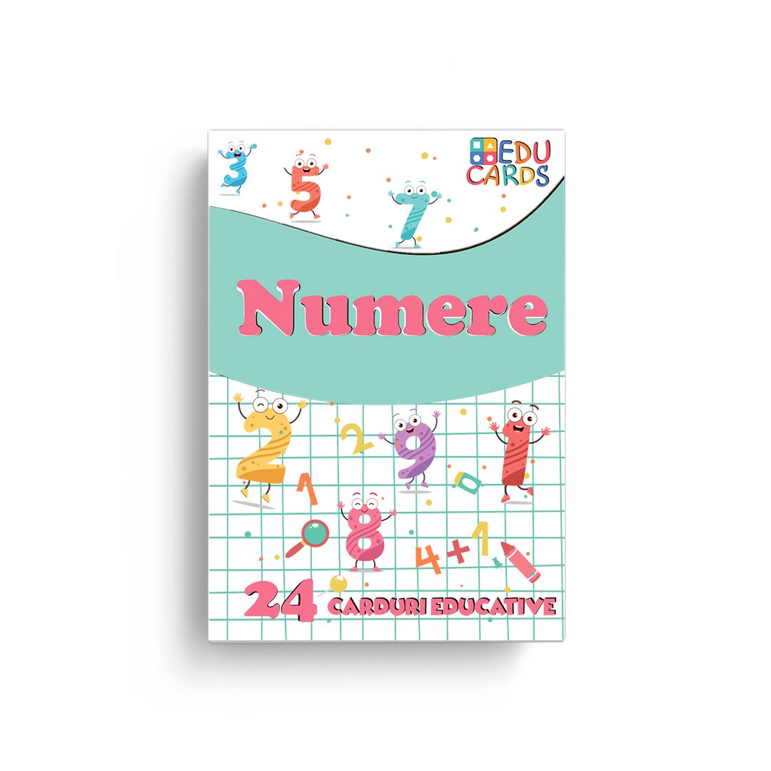 Setul de cartonașe educative are scopul de a familiariza copiii cu lumea numerelor ușor și atractiv. Setul conține numerele de la 0 la 20 și semnele ”+”, ”-”, ”=”.