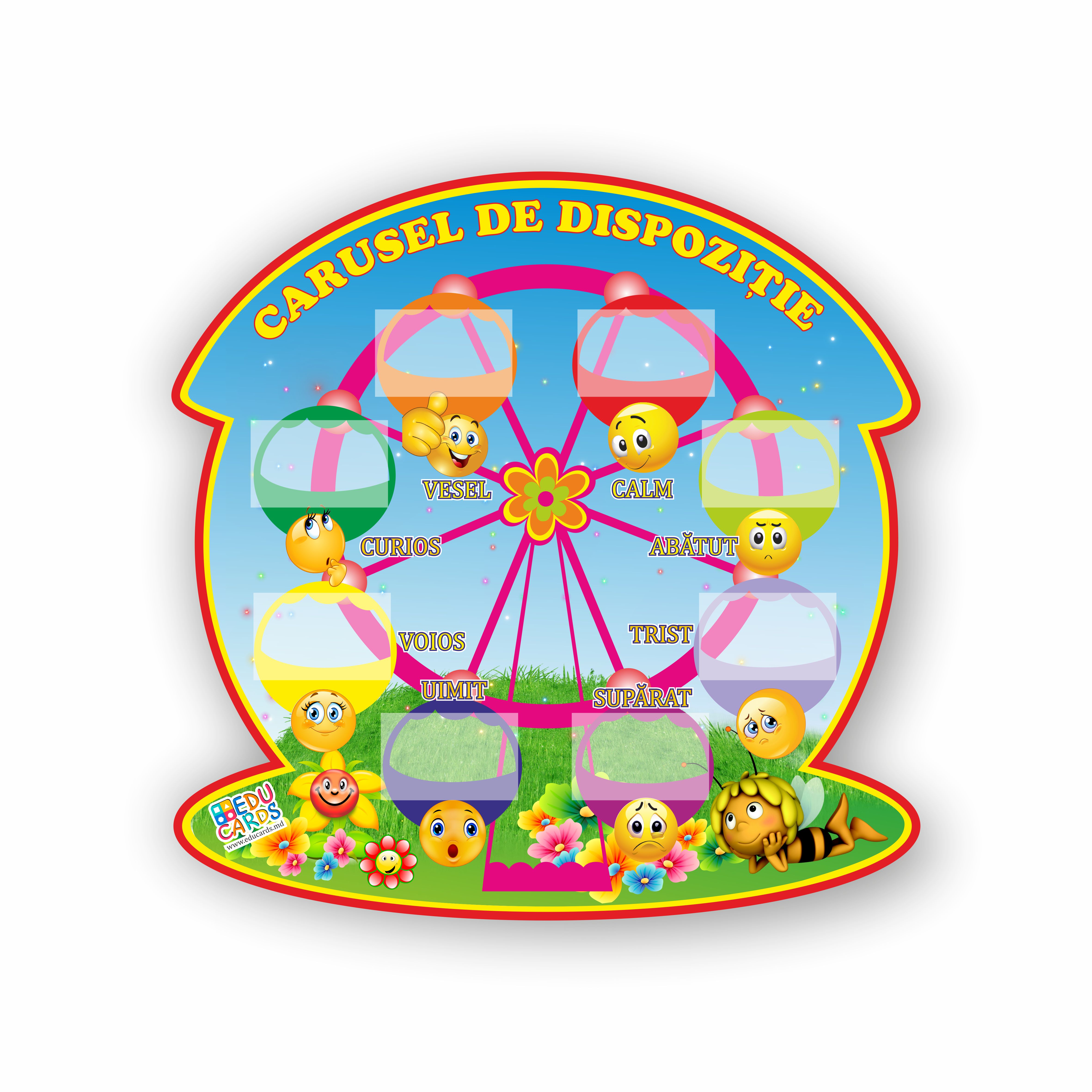 Un instrument vizual și interactiv care îi ajută pe copii să își recunoască și exprime stările emoționale. Prin imagini prietenoase și culori vesele, copiii învață să își identifice emoțiile precum: vesel, trist, curios sau supărat – dezvoltând astfel inteligența emoțională încă de la grădiniță.