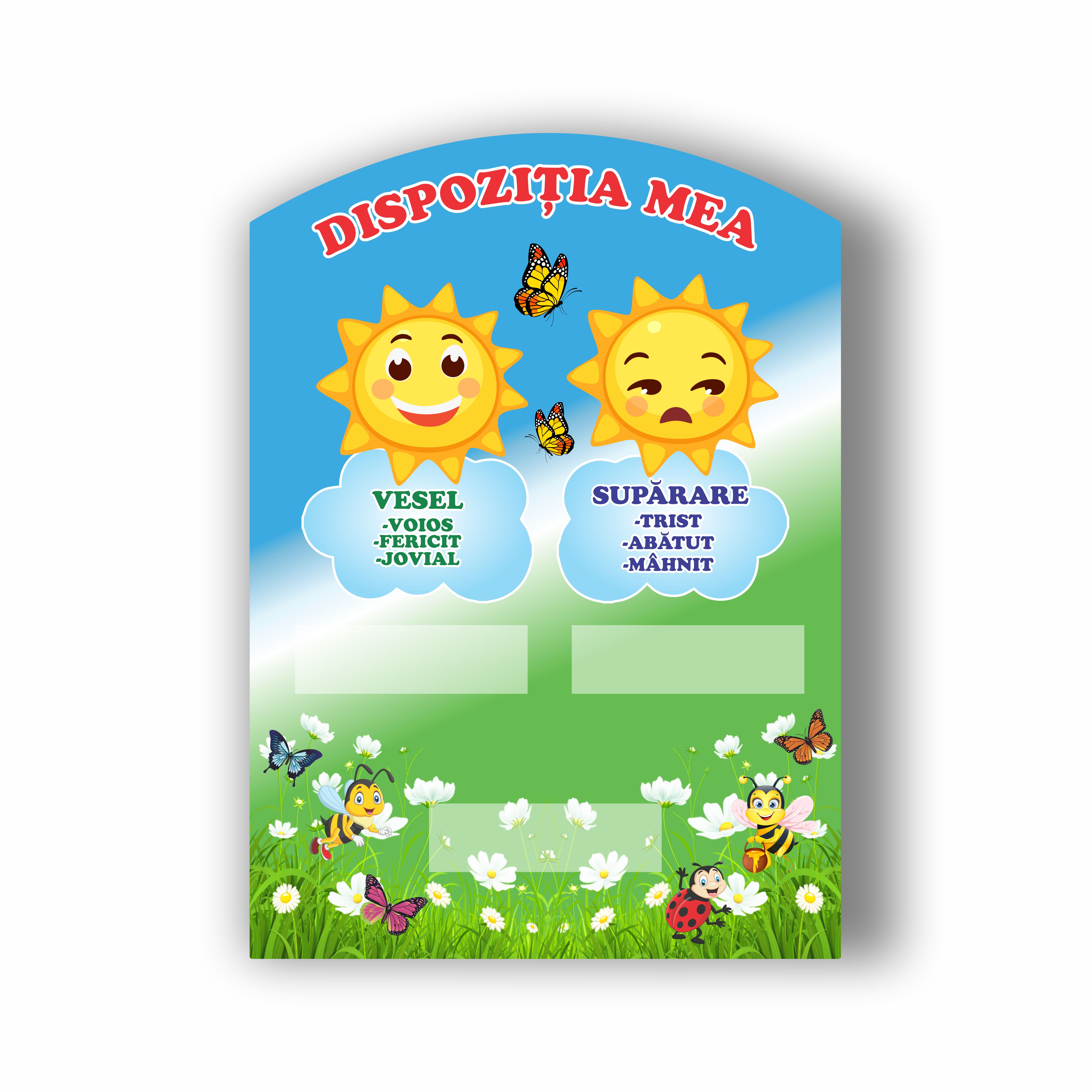 Un instrument vizual și interactiv care îi ajută pe copii să își recunoască și exprime stările emoționale. Prin imagini prietenoase și culori vesele, copiii învață să își identifice emoțiile precum: vesel, trist, curios sau supărat – dezvoltând astfel inteligența emoțională încă de la grădiniță.