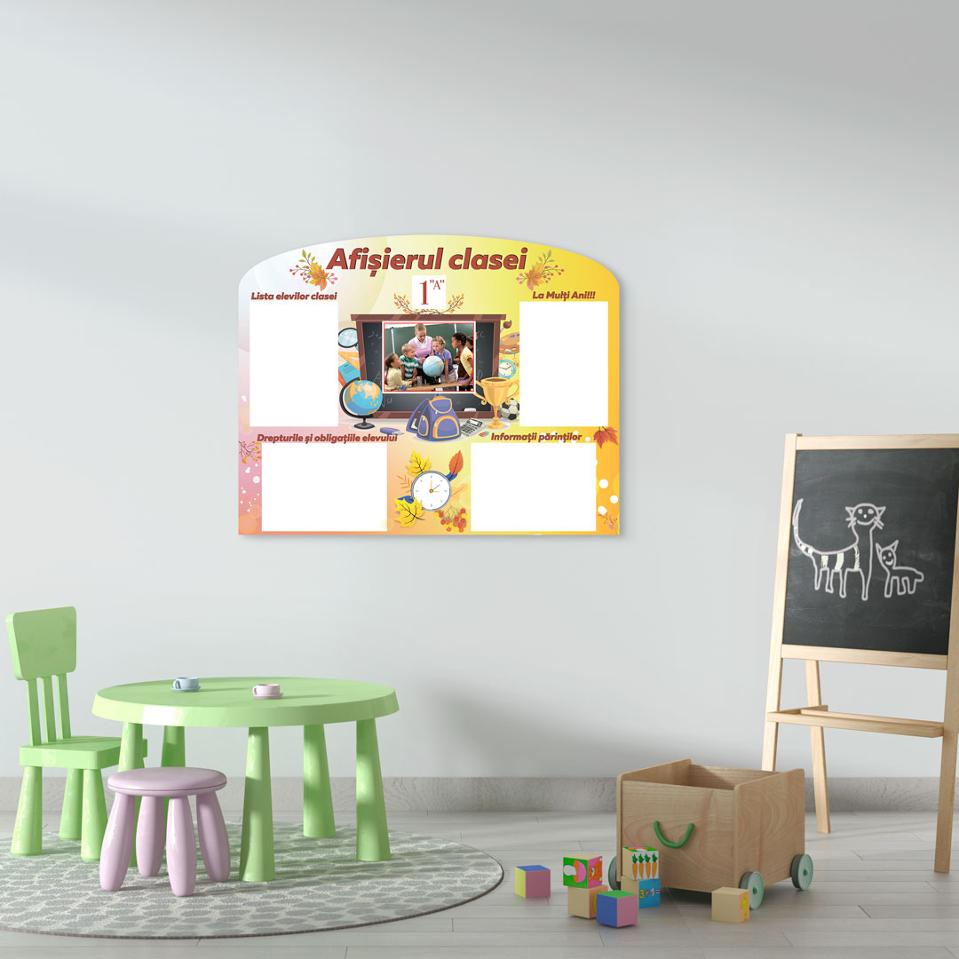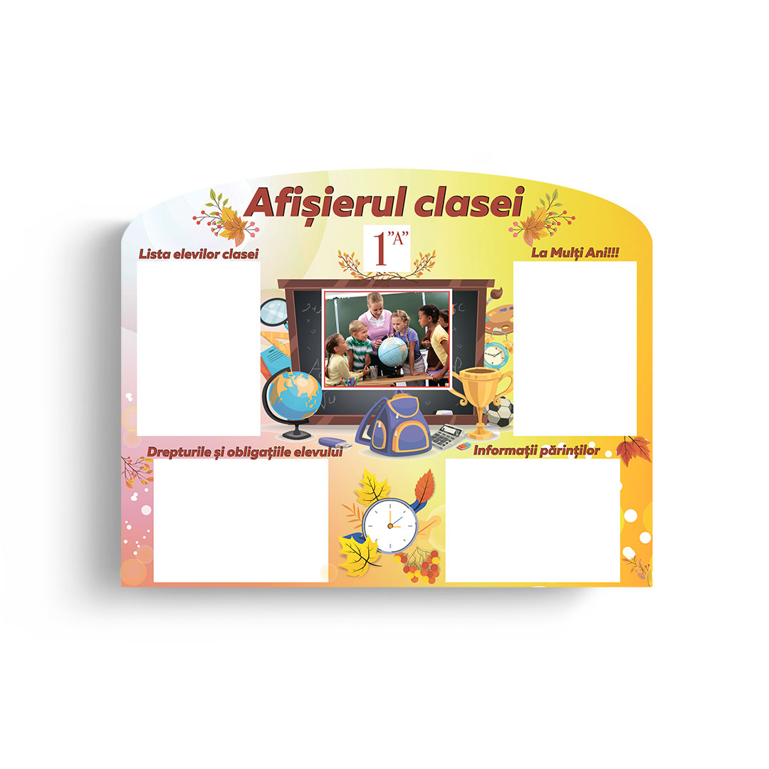Panou informativ pentru instituții, cu tehnica de imprimare UV directă pe material și cu buzunare format A4.