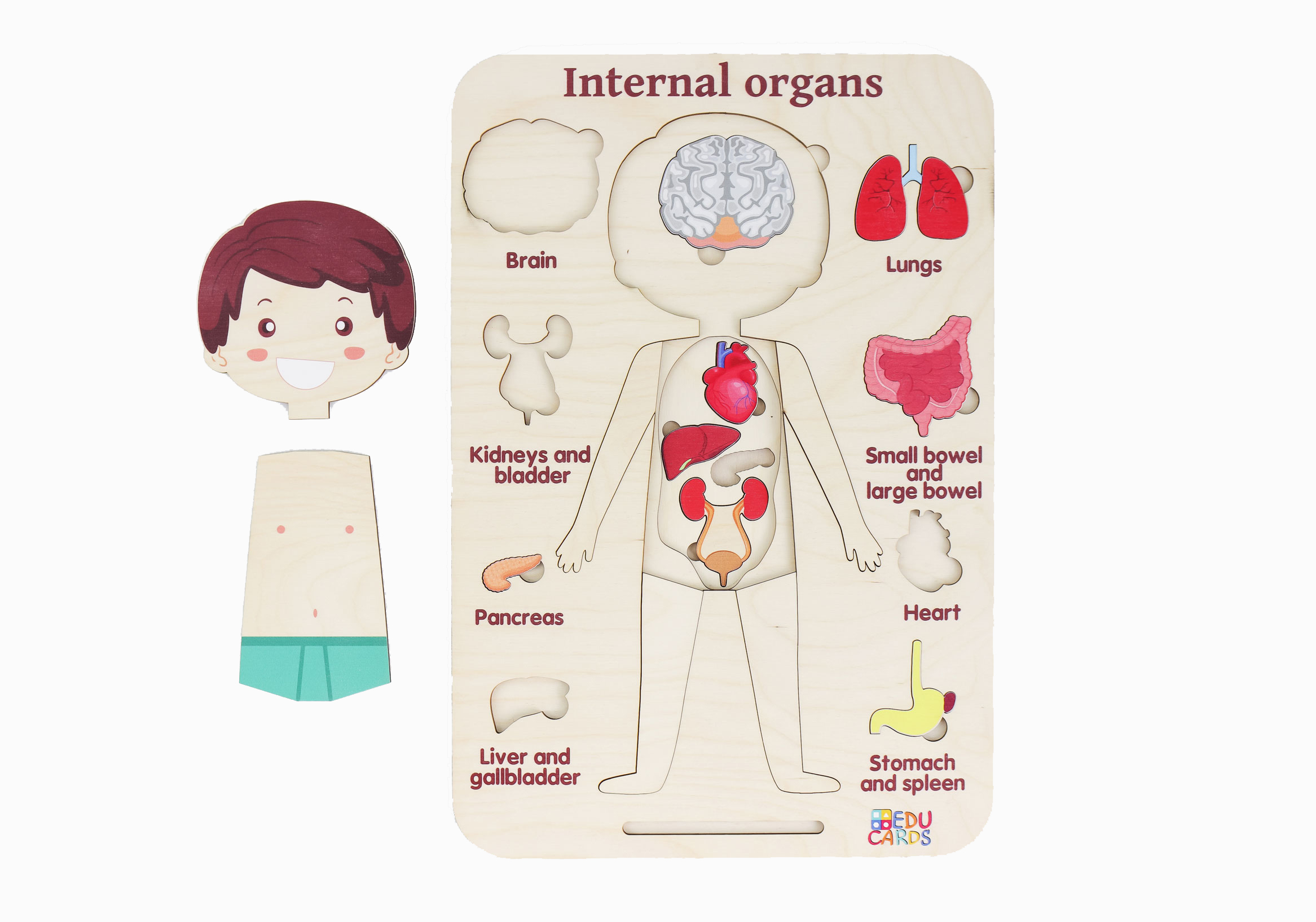 structura corpului, organele interne, poziția lor în corp, cât și denumirile lor. Este un cadou minunat pentru copii pentru orice ocazie! Realizat după standarde și principii care oferă celor mici siguranța utilizării lor: