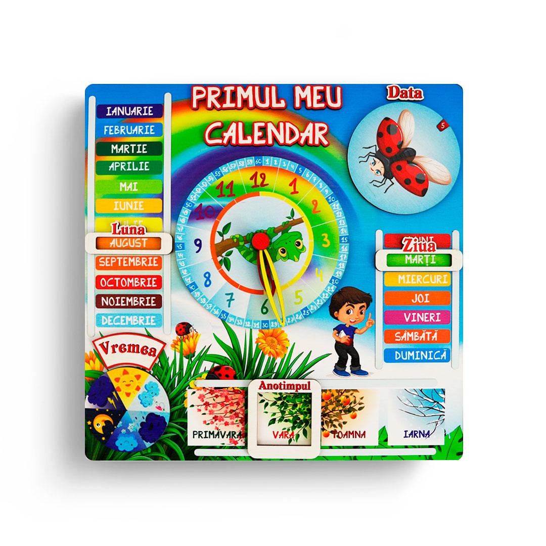 Calendarul este potrivit pentru cei mici în învățarea timpurie a zilelor săptămânii, lunilor anului, anotimpurilor și citirea ceasului, totul fiind redat într-un mod interesant și atractiv. Jocul dezvoltă abilitățile cognitive de orientare în timp, de recunoaștere și caracterizare a vremii, de comparație și, nu în ultimul rând, de memorare.