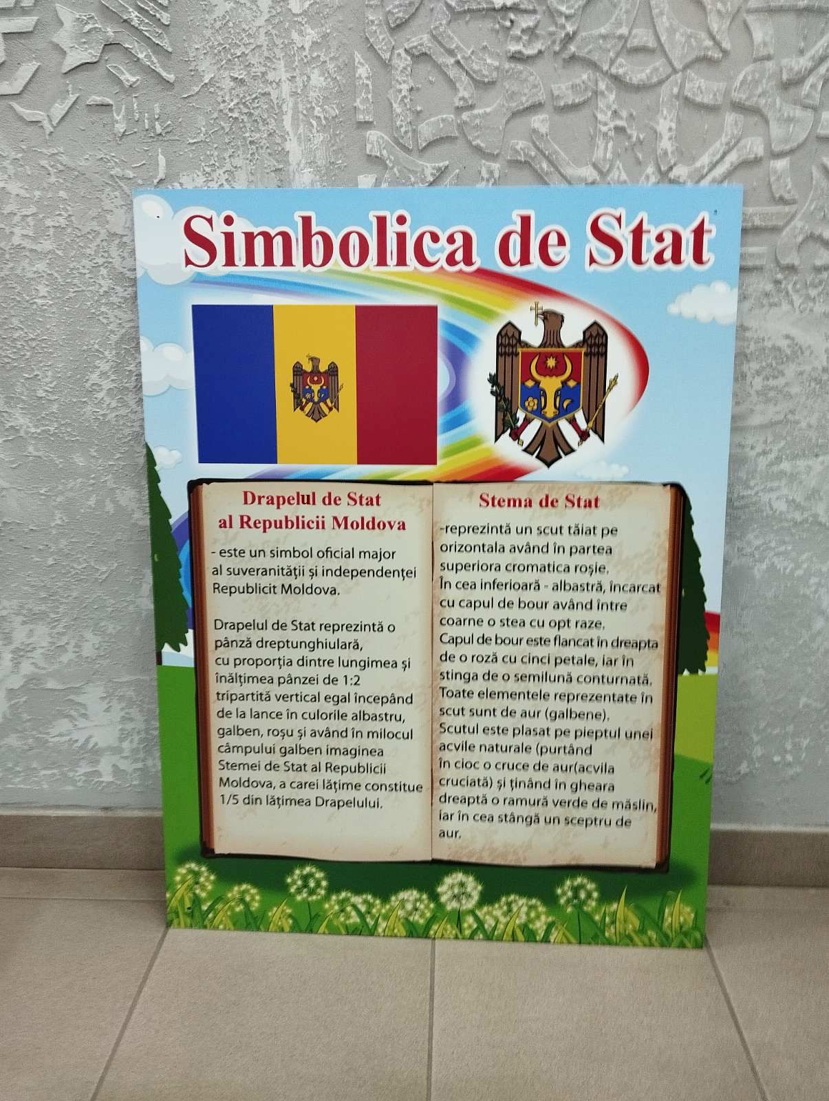 Descoperă panoul educativ „Simbolica Republicii Moldova”, un material vizual complet care prezintă drapelul, stema, imnul „Limba noastră”, harta județelor și monumente istorice importante. Ideal pentru clasele din școli și grădinițe, acest panou contribuie la dezvoltarea identității naționale și educației civice.